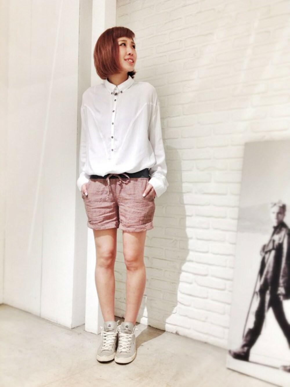somedayslovin(サムデイズラヴィン)のブラウスはかちっと見せてくれるのに生地柔らかくて◎◎ November(ノーベンバー)のショートパンツ楽ちんスタイル♪♪