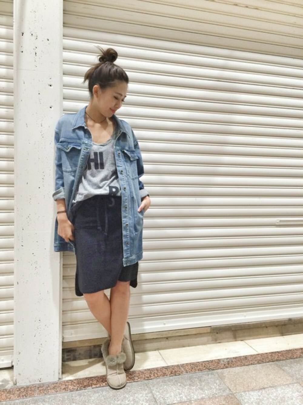 hama(CANALJEAN 神戸店)のスカート「v::room(ブイルーム) エアリーパイルスカート」を使ったコーディネート
