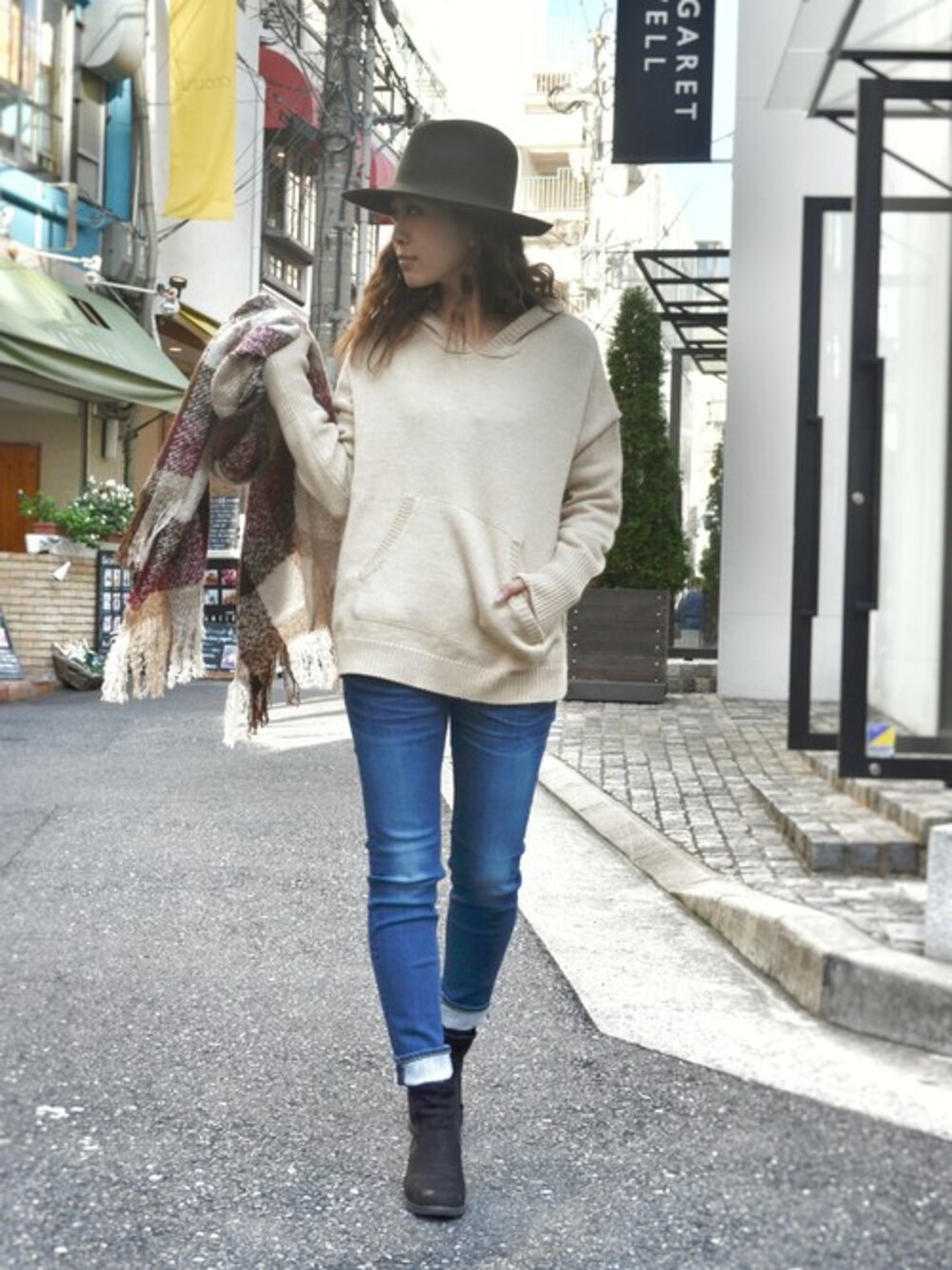 hama(CANALJEAN 神戸店)のニット/セーター「RED CHOP WORKS(レッドチョップワークス) パーカーニットプルオーバー」を使ったコーディネート