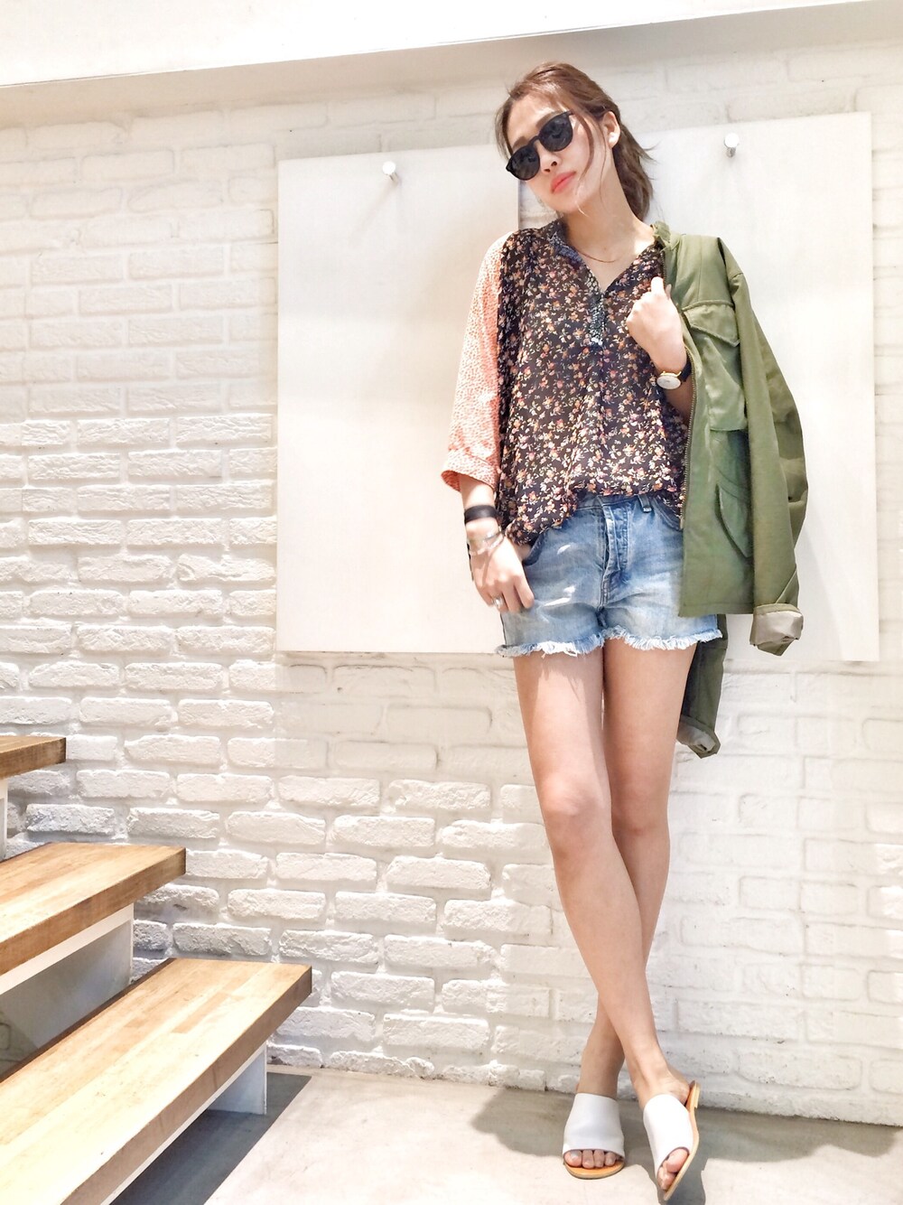 hama(CANALJEAN 神戸店)のデニムパンツ「free people (フリーピープル) カットオフデニムショートパンツ」を使ったコーディネート