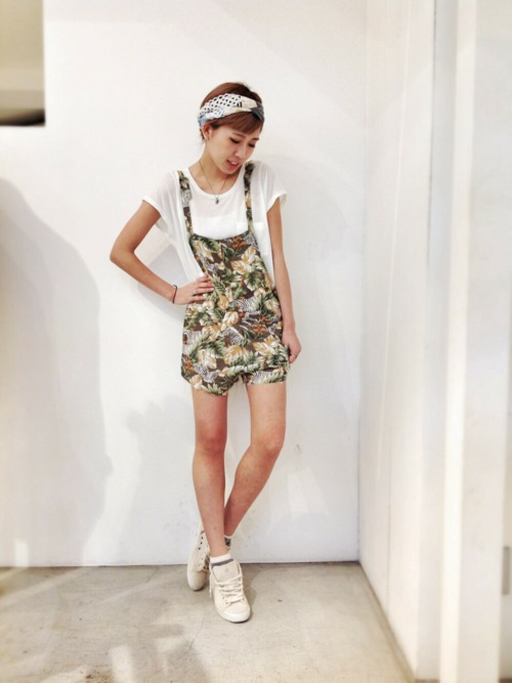 THE PEOPLE Vs (ピープルバーサス)のコンビネゾンは、ココナッツ柄にひとめぼれっ♥︎☆ サイズも調節可能で軽い着心地♪ Munich(ミューニック)のTシャツをインナーに*