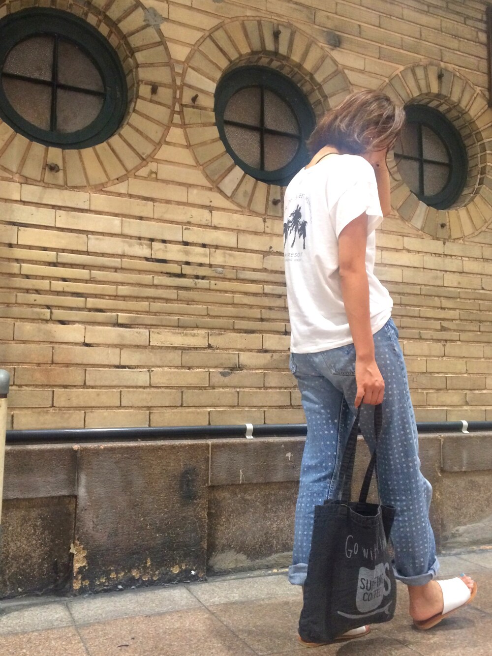 hama(CANALJEAN 神戸店)のTシャツ/カットソー「RED CHOP WORKS (レッドチョップワークス) ヤシの木プリントTシャツ」を使ったコーディネート