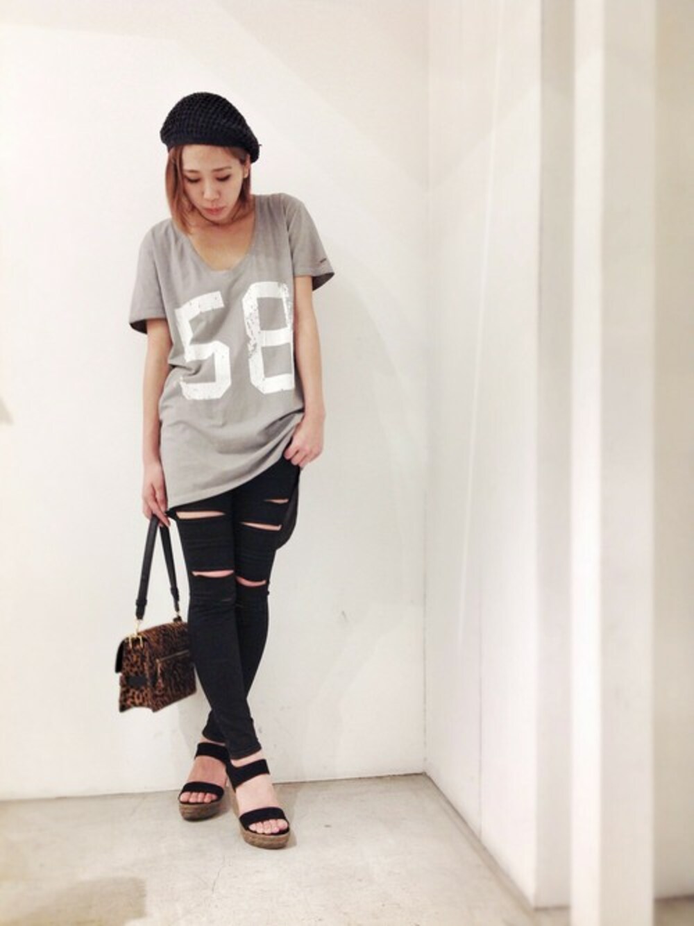 REIGN(レイン)のナンバリングTシャツはざっくりしたシルエットなのに、すっきり綺麗に見えてこの夏使えそうっ‼︎ D-ID(ディーアイディー)のカットスキニーパンツをレギンス風に合わせて大人coolに✴︎✴︎