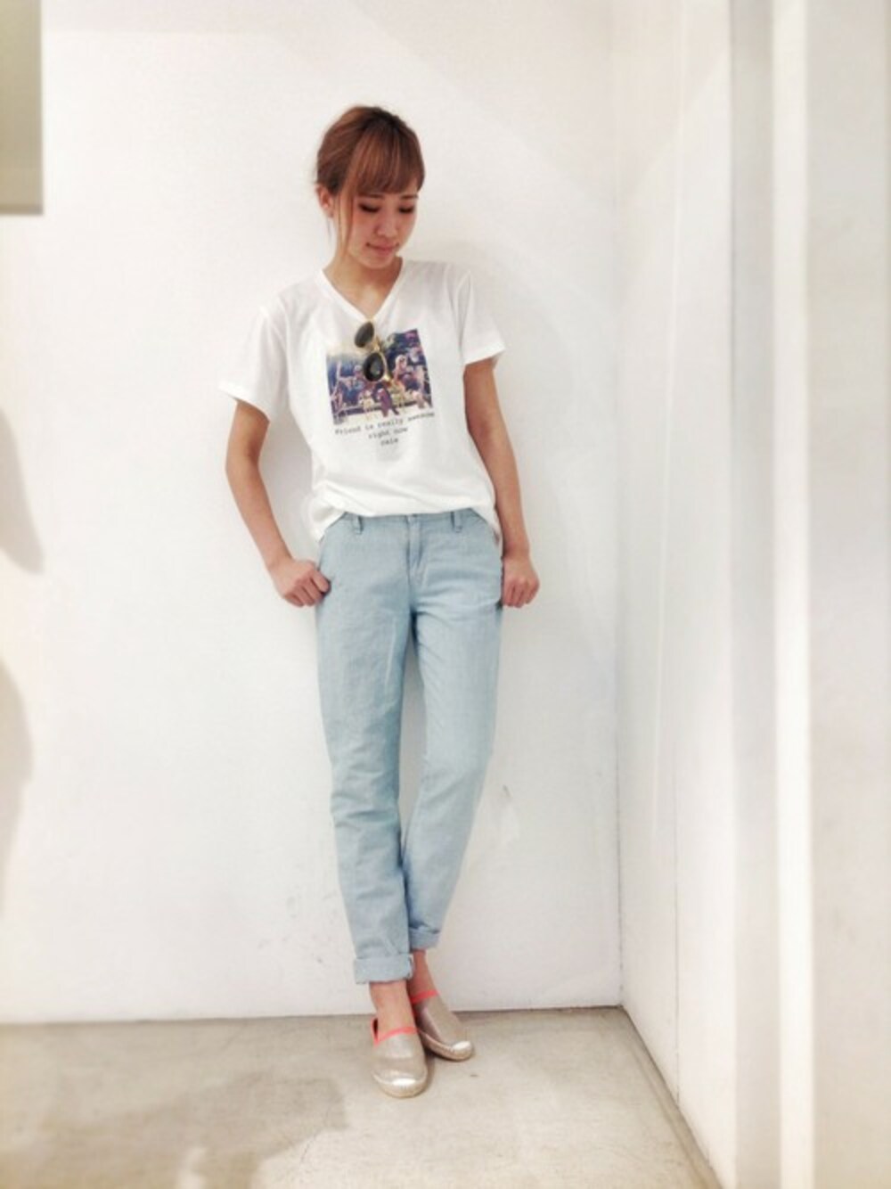 ストライプ柄が爽やかなJoe's(ジョーズ)のパンツ♡♡ caie(カイエ)の転写プリントTシャツをさらっと合わせてラフスタイルに♪♪
