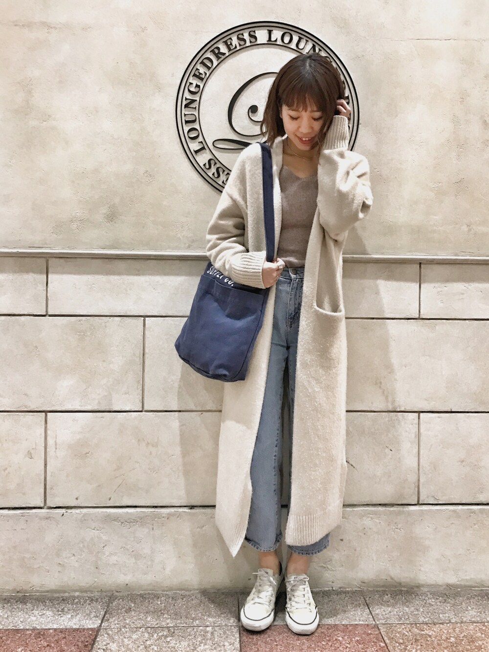 ロングカーデで淡いトーンのカジュアルスタイル🙌🏼💓