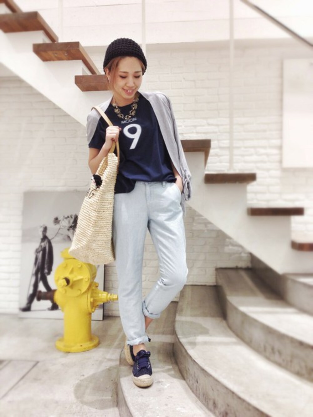 hama(CANALJEAN 神戸店)のTシャツ/カットソー「Caie ナンバリングプリントTシャツ/カイエ」を使ったコーディネート