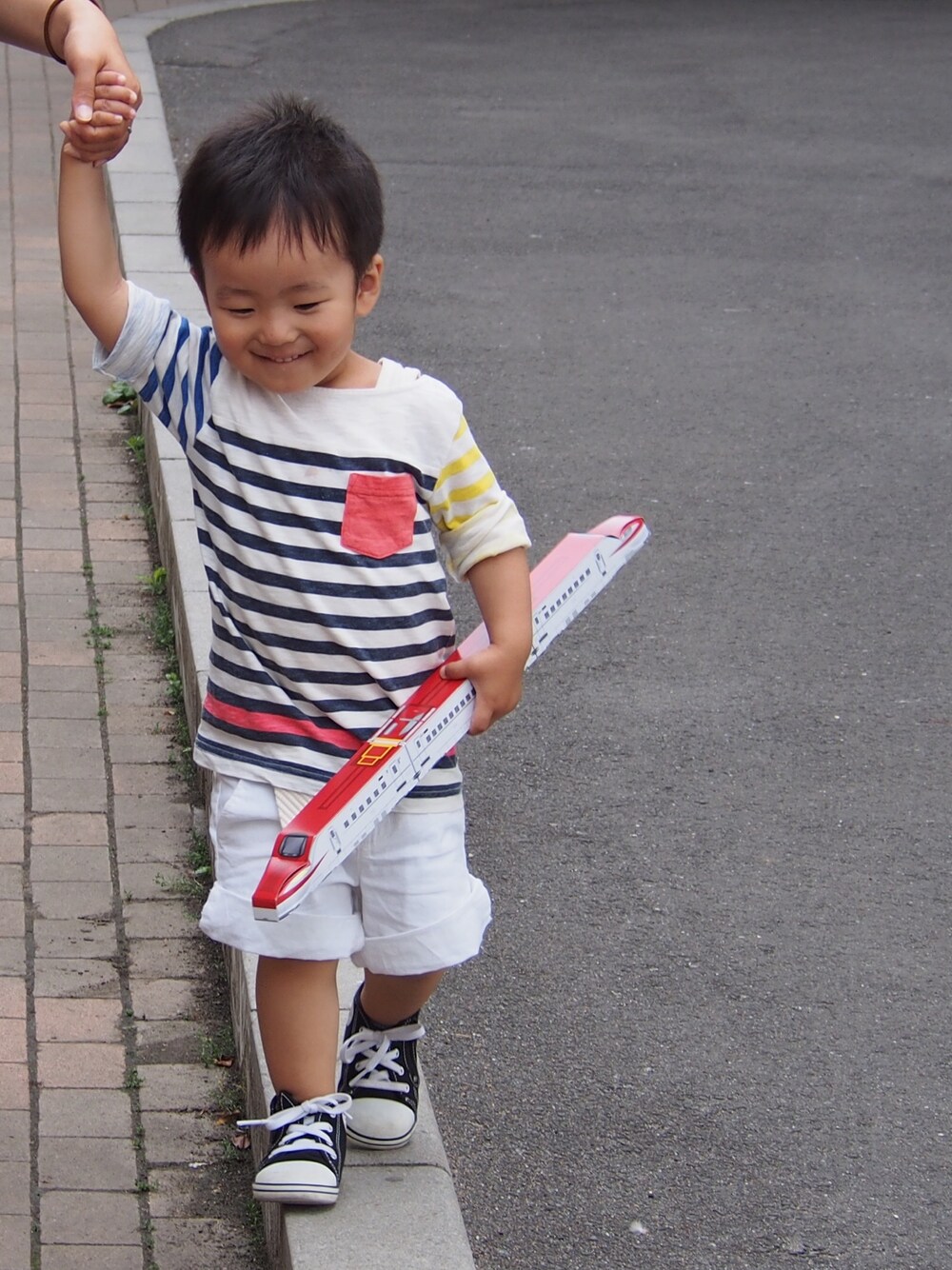 もうすぐ3歳のお誕生日なので、家族で鉄道博物館へ行ってきました!電車大好きなので、今までにないくらい目をキラキラさせて走り回ってました♡ 気に入った靴しか履かない息子…最近こればっかり(^_^;)まぁ、何にでも合うので良いのですが! 手に持ってるのは長ーいスーパーこまち!中身はバームクーヘン!おもちゃよりこっちを選びました♡