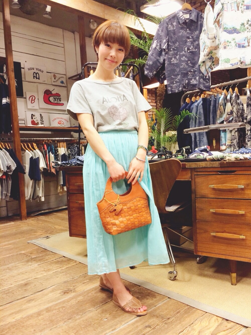 このプリントT、好きです♡ コットンスカートでアロハ気分全開です!笑 白のスカートもいいけど、ビタミンカラーも素敵✨