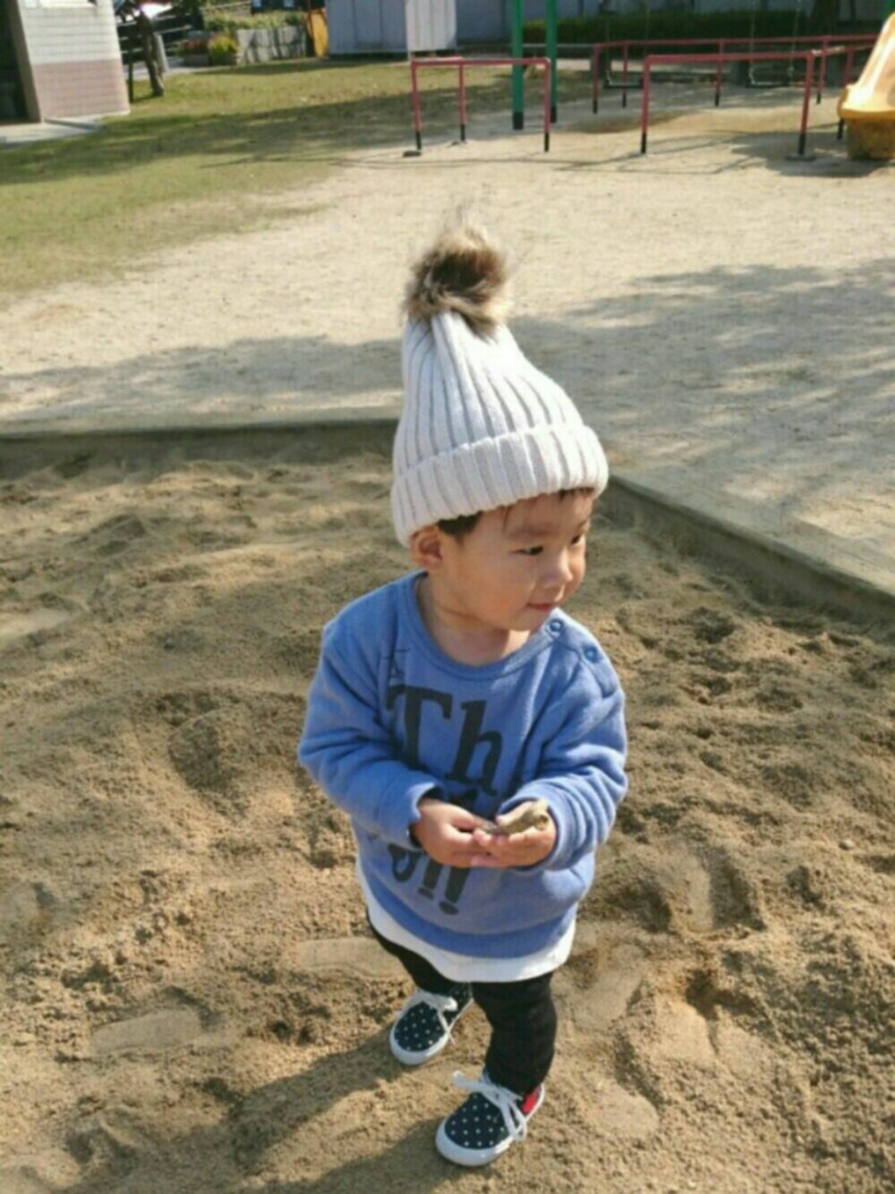 ご覧いただきありがとうございます😌✨ ♡、お気に入り、とても嬉しいです💕 昨日の公園コーデです😊 靴と帽子以外は、全てお下がりです🐤 90センチはまだまだ大きいな…😅
