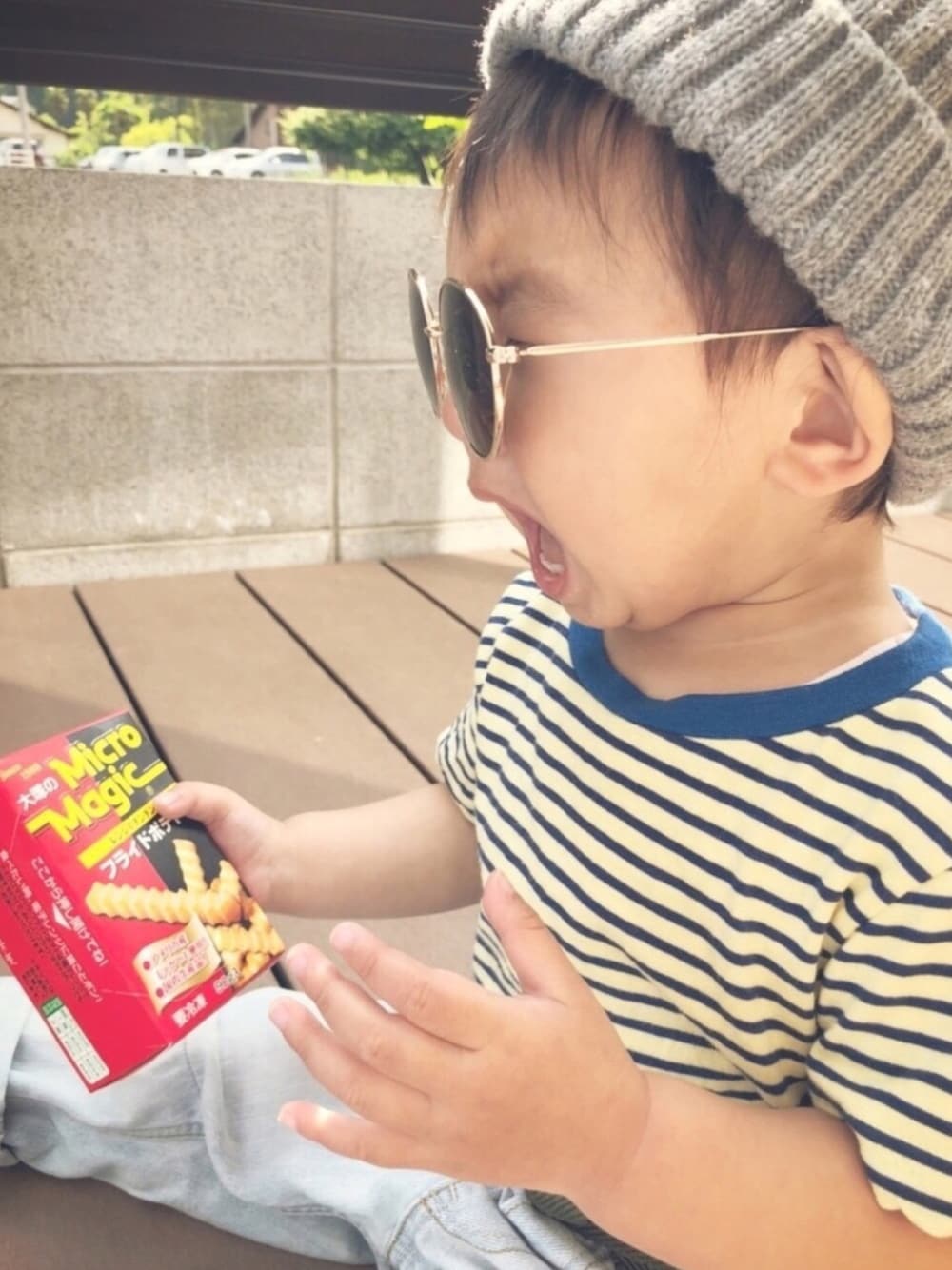 ご覧いただきありがとうございます😊 ♡︎、お気に入り、コメント、フォロー、どれもとっても嬉しいです😍❤️ 昨日の弟くん👶🏻 写真イヤーーー💥 帽子イヤーーー💥💥 サングラスイヤーーー💥💥💥 早くポテト食べさせてーーー🍟💥💥💥 な、一枚ですっ😊✨笑