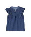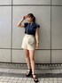 instagram @mfm_yuri デニムブラウス×ホワイトボトムは間違いない! ダブルフリルが二の腕の張りを隠してくれる、夏にはピッタリなキレイめカジュアルコーデ🤍