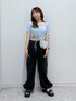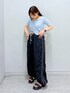トレンドのラインパンツと、コンパクトで肌見せできる短丈トップスでカジュアルに合わせました! ドロスト部分で着丈の調節もできるので、肌見せ苦手な方は緩めに着るのもかわいいと思います!