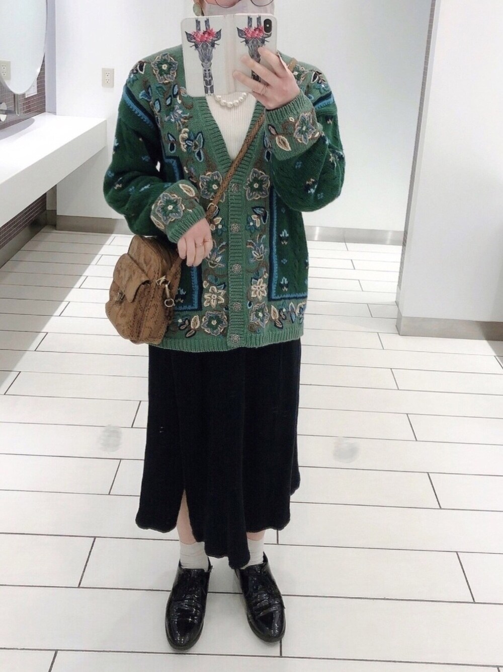 古着カーディガンは派手派手クセあり❤️なのでスカートはシンプルに🤪✨✌️