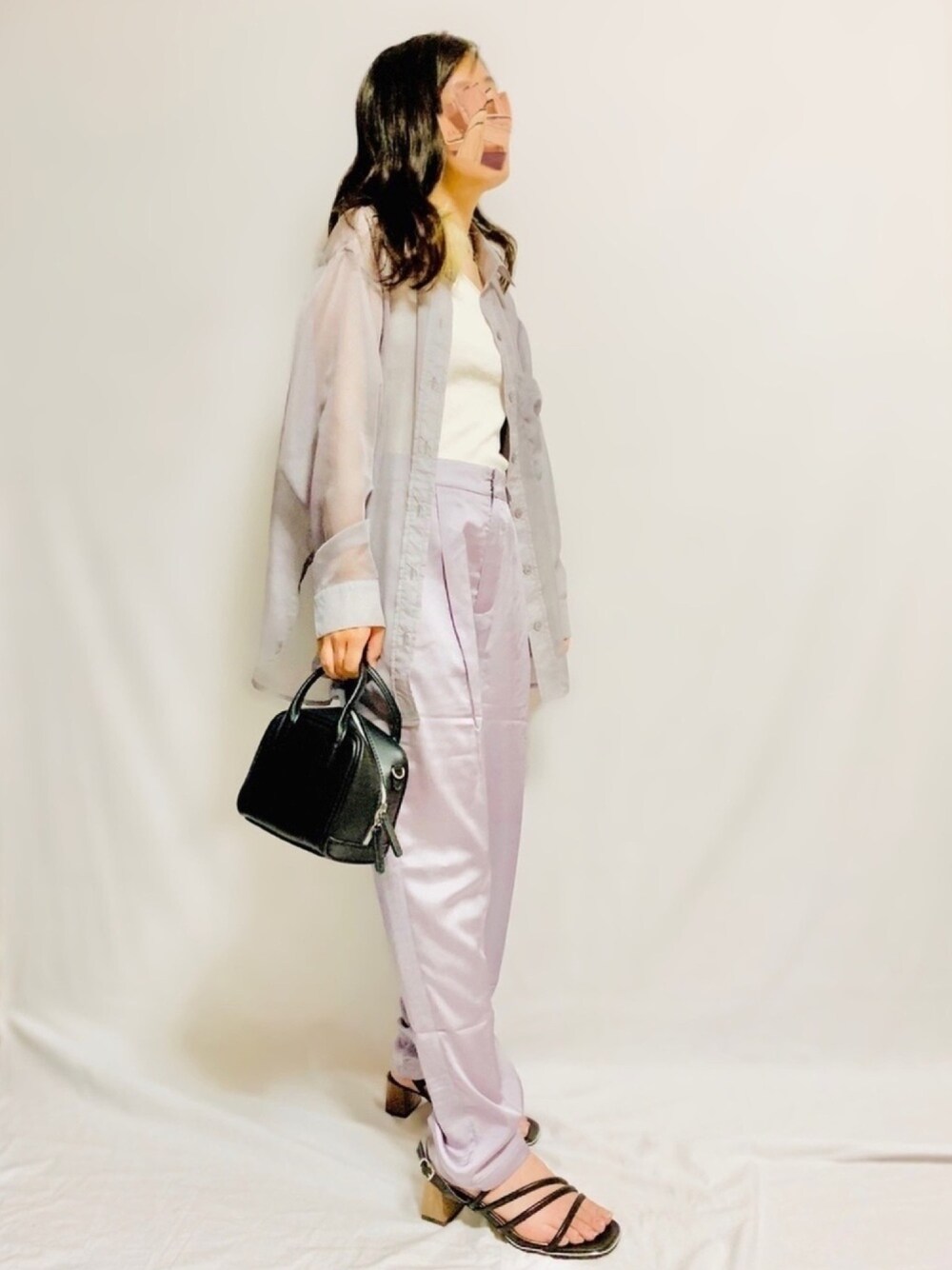 ご覧いただきありがとうございます😊 GRLのサテンパンツとシアーシャツでプチプラコーデ🥰 ______________________________________________________ . ❤️tops: @grl_official . 💜pants: @grl_official 💚shoes: @fabbyfabby_tokyo . 🧡bag: @gu_global .