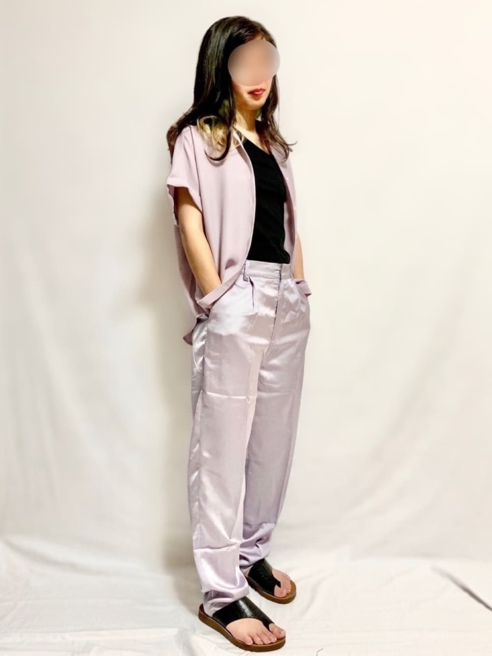 ご覧いただきありがとうございます🙇♀️ パープル色でコーデしました😘💜 サンダルはクロコ👡🐊🥰 ______________________________________________________ ❤️シャツ: @gu_global 🧡タンクトップ: @auntmaries.official 💜パンツ: @grl_official 💙サンダル: @vivian_collection_official