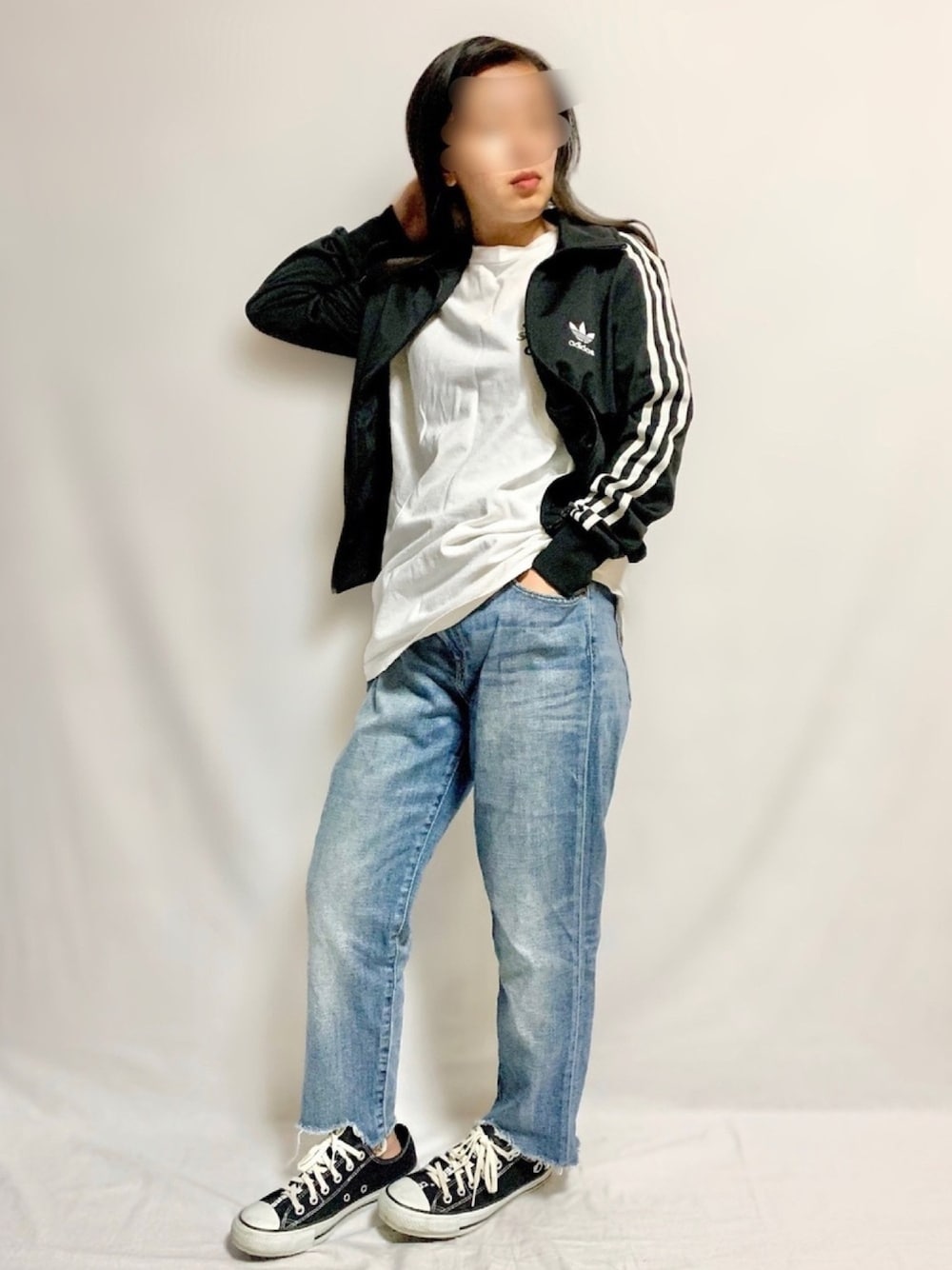 ご覧いただきありがとうございます🙇♀️ スポーツミックス😉 やっぱり3ストライプスはカッコイイなぁ😊 ジーンズにシンプルにあわせるのが好き✌️ ______________________________________________________ ❤️トラックトップ: @adidasoriginals 🧡パンツ : @gu_global 💚スニーカー: @converse_jp