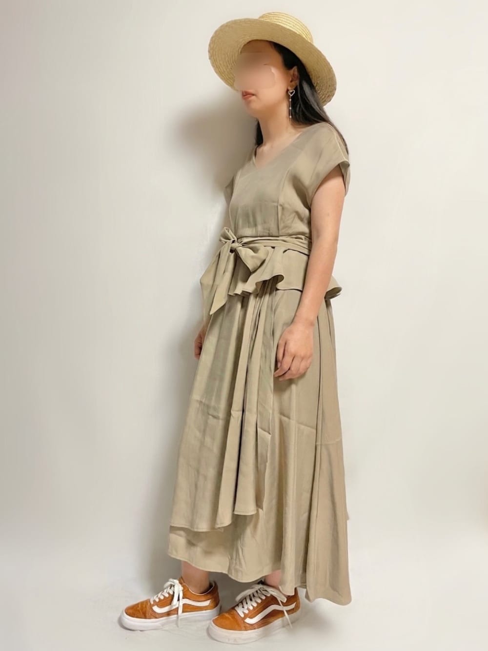 🌷𝒚𝒖𝒖𝒓𝒊.🌷のワンピース「【低身長向け】スタイルアップの秘訣が盛り沢山!ペプラムワンピース」を使ったコーディネート