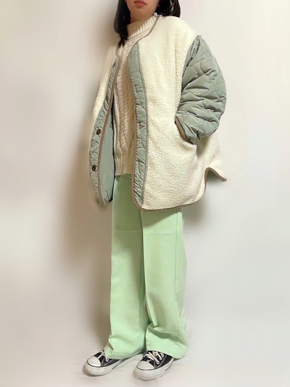 ご覧いただきありがとうございます😊 @forksy_official さんのスラックスパンツ着用コーデになります✨✨✨ ストレートのシルエットにセンタープレス がはいるので美脚効果ありです🤗 私は新作カラーのライトグリーン履いてますが綺麗なカラーで春先にもピッタリ👌 カラーも豊富にあるのでコーデに合わせて色違いもお勧めです😍 ♥・*:.。 。.:*・゚♡・*:.。 。.:*・゚♥ ♥・*:.。 。.:*・゚♡・*:.。 。.:*・゚♥ 《forksy.》 ■ TRセンタープレス ハイウエストストレートスラックスパンツ ■カラー:ライトグリーン ■サイズ:S 《bohmal》 ■ アラン柄モックネックニット ■カラー:オフホワイト ■サイズ:FREE 《ECRIRE》 ■ 【miho.a.nicoコラボ】キルティングジャケット ■カラー:アイボリー ■サイズ:M ♥・*:.。 。.:*・゚♡・*:.。 。.:*・゚♥ ♥・*:.。 。.:*・゚♡・*:.。 。.:*・゚♥ ▶︎ジャケット: @ecrire.jp ▶︎ニット: @bohmal_official ▶︎パンツ: @forksy_official ▶︎スニーカー: @converse_jp ♥・*:.。 。.:*・゚♡・*:.。 。.:*・゚♥ ♥・*:.。 。.:*・゚♡・*:.。 。.:*・゚♥