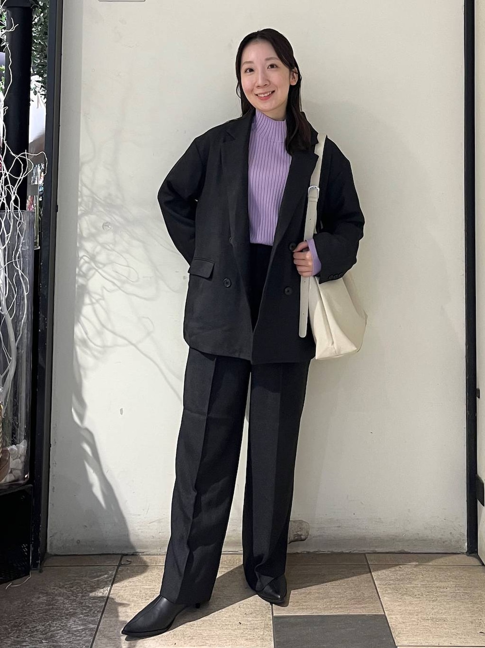 ----------------------------------------- パープルニットがポイント!お仕事コーデ👩💻 ----------------------------------------- 大人気のジャケットアイテムがSALE価格に🉐 ✔️ジャケット ラナテックシリーズは、毎年秋冬の定番アイテム! 肩が落ちているデザインで肩周りが華奢に見せてくれます👀 オンとオフ両方使えるシンプルなデザインは1枚持っておきたい‼️ ✔️パンツ 毎年大人気のラナテックシリーズのパンツ! 生地にハリ感がありオフィスカジュアルやフォーマルな場に持ってこいのアイテム✨ 157cmで丈はSサイズで床にギリギリ付かない程度の長さ、お腹周りはピッタリなので余裕持ちたい方はMサイズをおすすめします👍