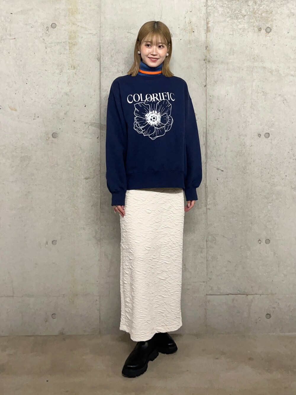 ゆりのニット/セーター「バイカラータートルコンパクトセーター」を使ったコーディネート