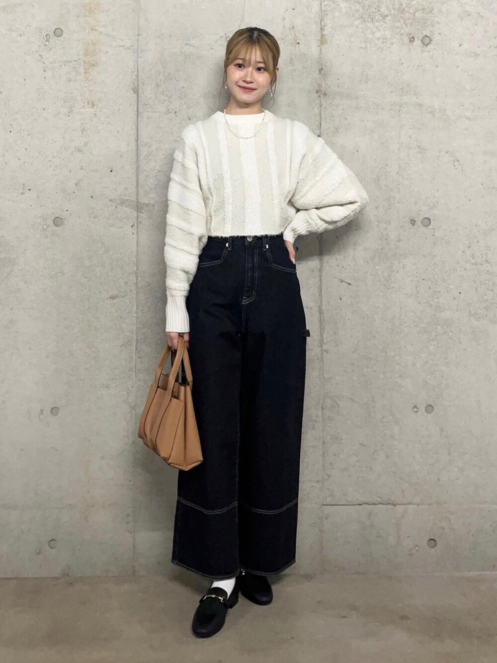 ゆりのデニムパンツ「ステッチペインターバギーデニム」を使ったコーディネート