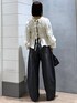 ブラウス ◎デザイン性があり1枚でも映える! ◎前後2wayで着れる! ◎着丈は長すぎないのでボトムとのバランスがとりやすい! ◎合わせるインナーを変えることでロングシーズン着回せる! デニム ◎ヒップから裾にかけてカーブしたシルエット ◎ウエストにはタック入り! タックが入っていることで立体的なシルエットに仕上がり、スッキリ見えする! ◎股上深め ◎短丈トップスとも相性GOOD!!バランスよく仕上がる! ◎カラーにより雰囲気が違うので色違いで持っていても着回せる!