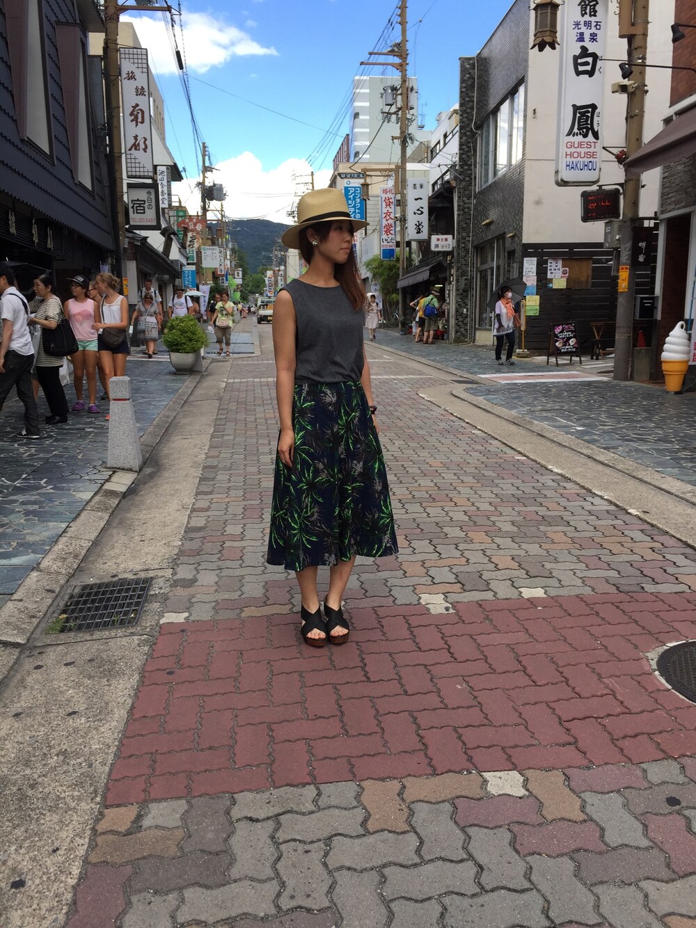 ならまちに行ってきました✨ すっぽり頭からかぶるだけでコーディネート完成の手抜きスタイル😝笑 気になる下半身もボタニカル柄で 目くらまし✨
