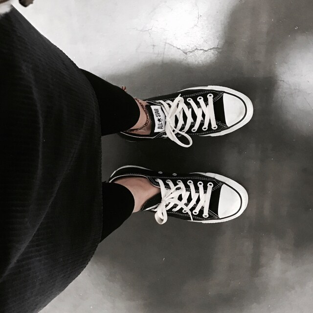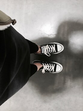 「CONVERSE(コンバース)のアイテム(スニーカー、ブラック系)」を使った、yu☺︎‼︎さん(レディース・155cm)の冬コーディネート