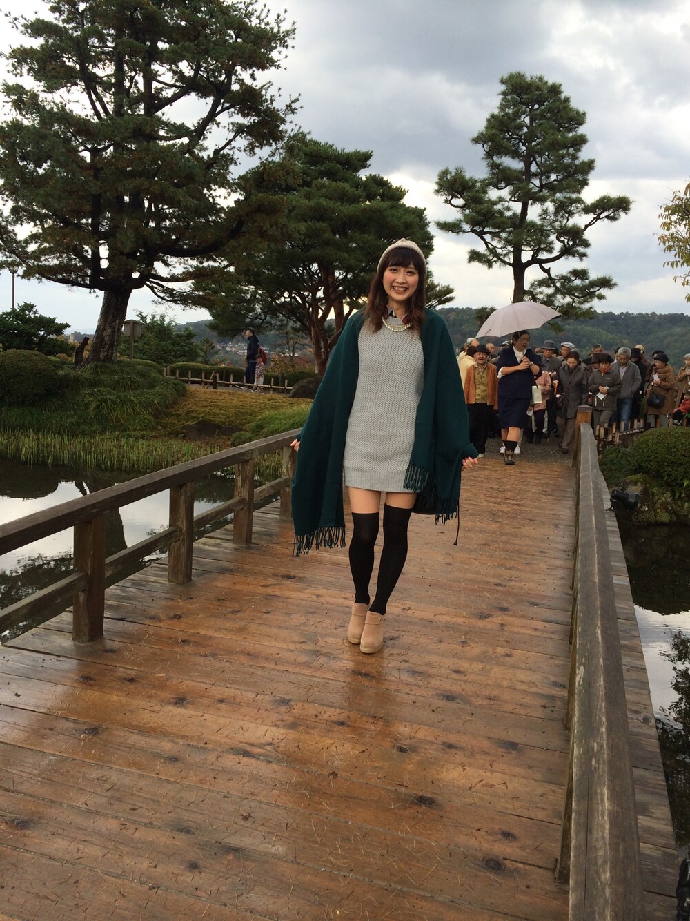 きょうは友達と金沢へプチ旅♡ 兼六園久々に行ってきました♡ 日本て素晴らしい*\(^o^)/* ストール♡GU ニット帽♡しまむら バック♡スピンズ シャツ♡OLD NAVY