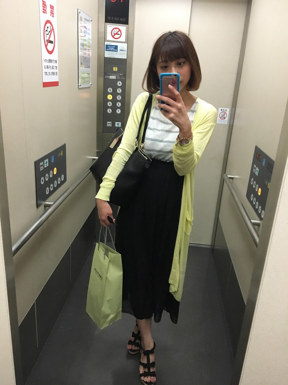 ゆりみつのカーディガン/ボレロ「【DUO】 配色BASIC BIG CD」を使ったコーディネート