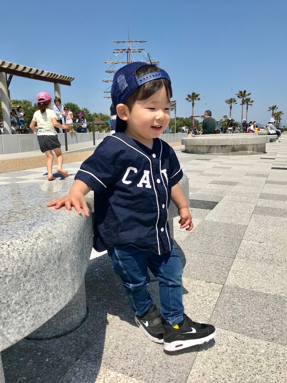 2018/04/28 家族で広野海浜公園へ。 たけるが帽子かぶってくれたんだよ!! 去年のこと思い出すとめちゃくちゃ進歩!!上にのせた瞬間投げ捨てられてたのに。たけちゃん成長したね。お母さんうれしい♡