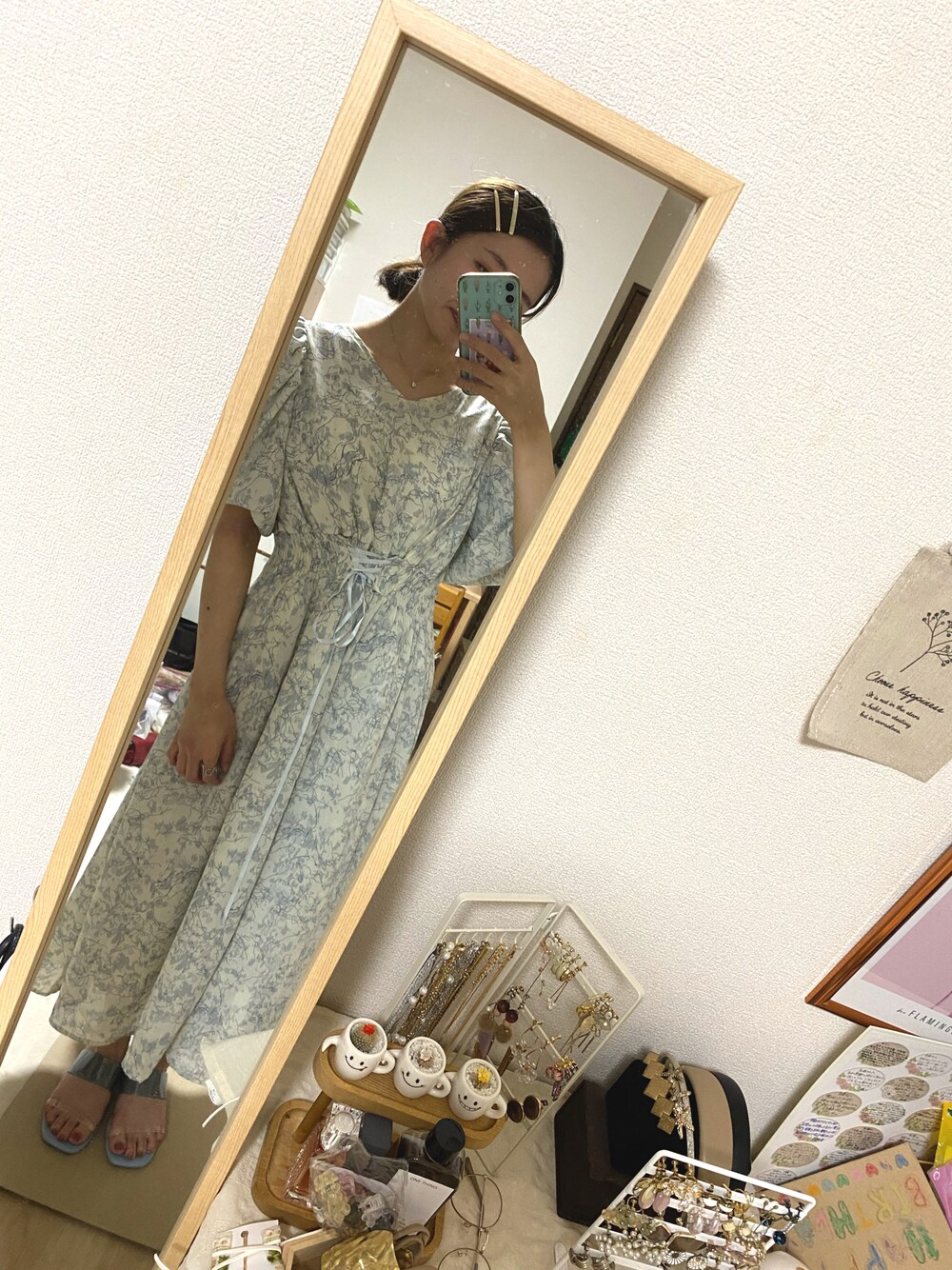 グレイル安いのにほんとに優秀。 子どもっぽすぎない花柄ワンピ🥺🫶 勝手に前後2wayで着てます。笑 GUのサンダルもお気に入り👡
