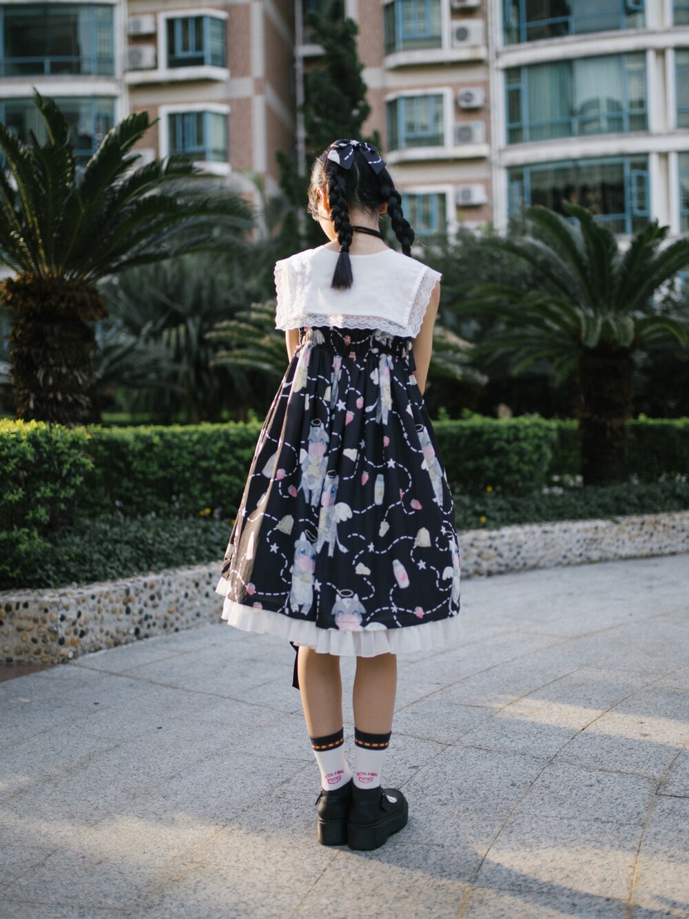 今天想正正经经地聊聊搭配 这条裙子拿到手我可能拍了上千张照片吧 室内室外 各种搭配穿法 包括一些大头照 细节图 视频等等… 第一次接拍是一个原因 但更多的是 我觉得它非常适合我 一开始我更喜欢op的型 觉得有袖子总是更可爱一些 但这条jsk就是…甜得来又可以女人味 甜得来又可以小男孩 在拍了众多搭配之后 我更喜欢裸穿+假领这样子的一个组合 因为我有些溜肩 这样不但可以掩盖一部分溜肩的缺点 又可以展现出纤长的手臂 而大体上 因为裙摆宽大且长度正好在膝盖上下的位置 从一定程度上来说也掩盖了我腿整体略粗且不直的缺点 小高腰的设计让我这个153的小矮子比例也拉长了不少 即使是男友视角拍出来的照片也可以见人! 还有 因为我超级无敌平胸 衣服胸前又有蕾丝 版型设计不容易走光 不穿内衣也ok 夏天太清凉了🌝