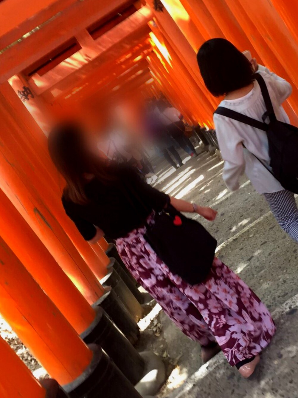 旅行の時のコーデ💕 パフスリーブに花柄ワイドパンツ。