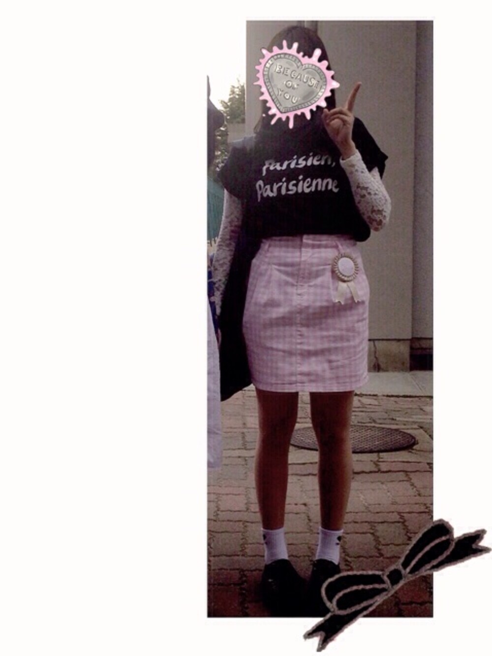 いつだかのコーデ。ロゼットはスピンズで〜。遠くて見えんけどかわいいのですお気に入り( ơ _ ơ ) 靴はBODYLINEのラバソですっ❗️💕 カバンは見えないけどMILKBOYの🐻さん💫ねばせいのトートバックです😊