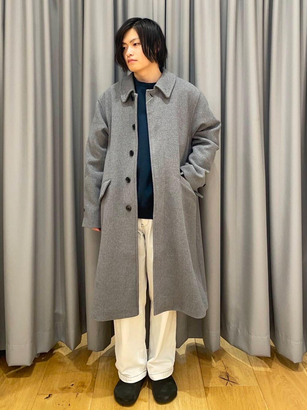 バルカラーコートはスタンドカラーでもお使いいただけます。 Aラインのシルエットが好きな方は是非!