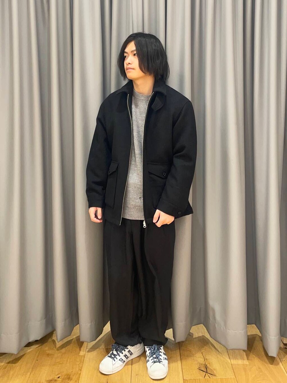 ショート丈のジャケットで素材もウールなので高級感があります。 ニットやパーカーで合わせるのがおすすめです。