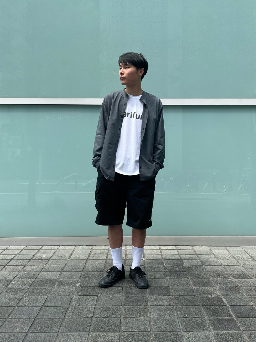 こんにちは、narifuri nagoya ユーセです。 本日はモノトーンでシンプルに。 インナーのロンTと、トップスのシャツはXLサイズを着用。 ジャストサイズで綺麗めに着るのも全然アリですが、個人的にはちょっとゆったり目でラフに着るのがオススメです◎ 通気性、速乾性抜群なので真夏でも全然いけちゃいますよ〜! Instagram(公式) ▶ narifuri japan Instagram(SNAP) ▶ narifuri_snap