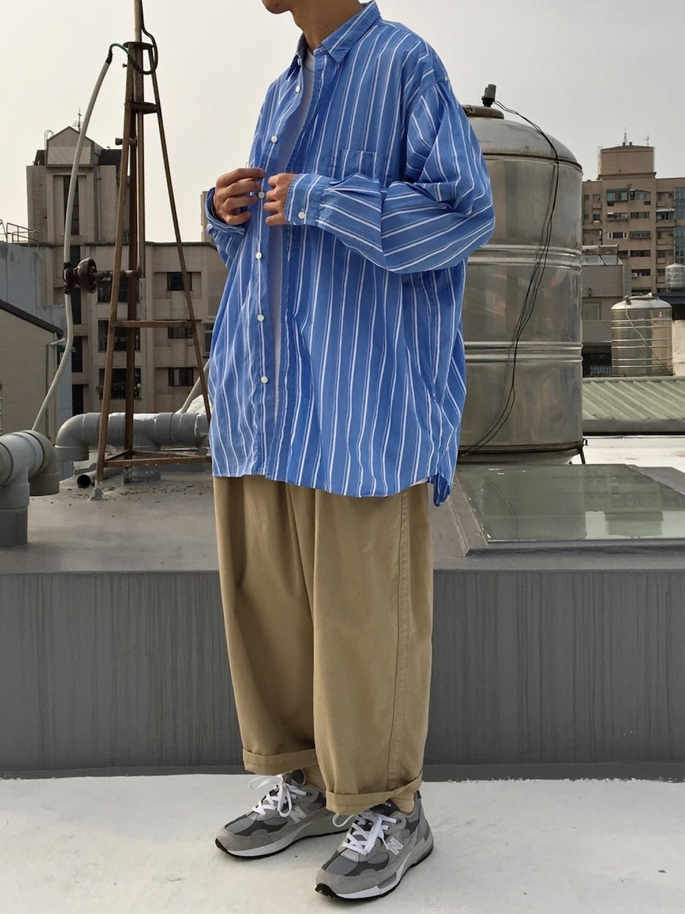 Y Selectのシャツ/ブラウス「BEAMS / ルーズフィット ブロード ストライプシャツ」を使ったコーディネート