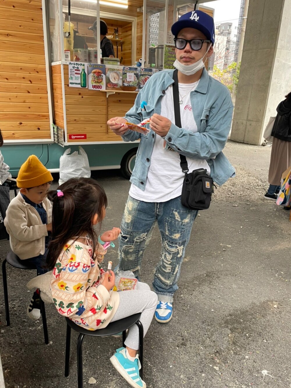 先週の運河パレードの日♪ 雨降って来たから屋根あるとこで駄菓子をもぐもぐタイム👦🧒