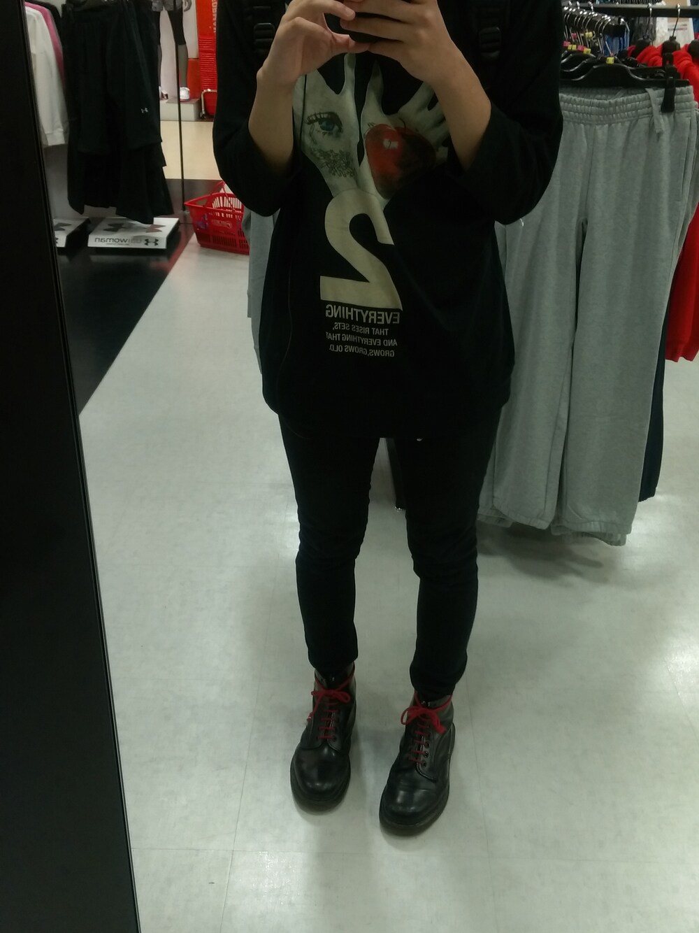 シャリーフのTシャツ買ったんで~ マーチンの紐は赤でTシャツと合わせてみました! オールブラック好き