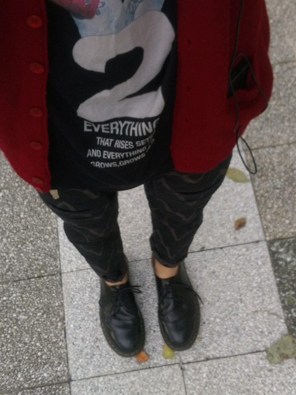 気に入っているSHAREEFのドルマンTシャツが主役のコーデ カーディガンは緩めを古着屋でみつけて一目惚れしました パンツはワイドテーパードの総柄