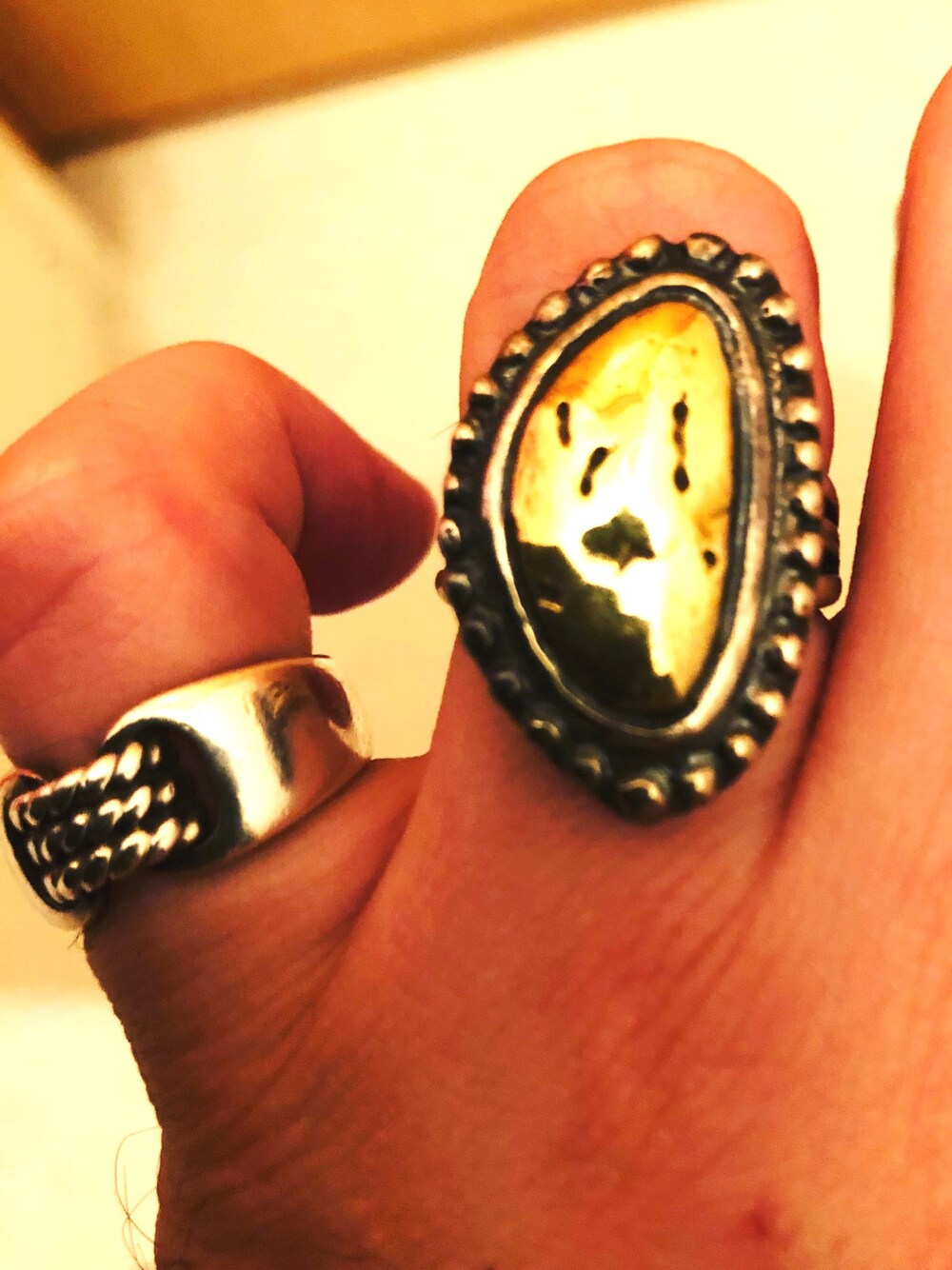 ゴールド系のリング、シルバー系のリングを着用したメンズの冬コーディネートの1枚目の写真