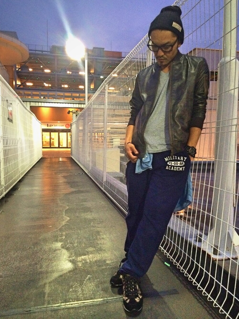 ブルー系のその他パンツを着用したメンズの秋コーディネートの1枚目の写真