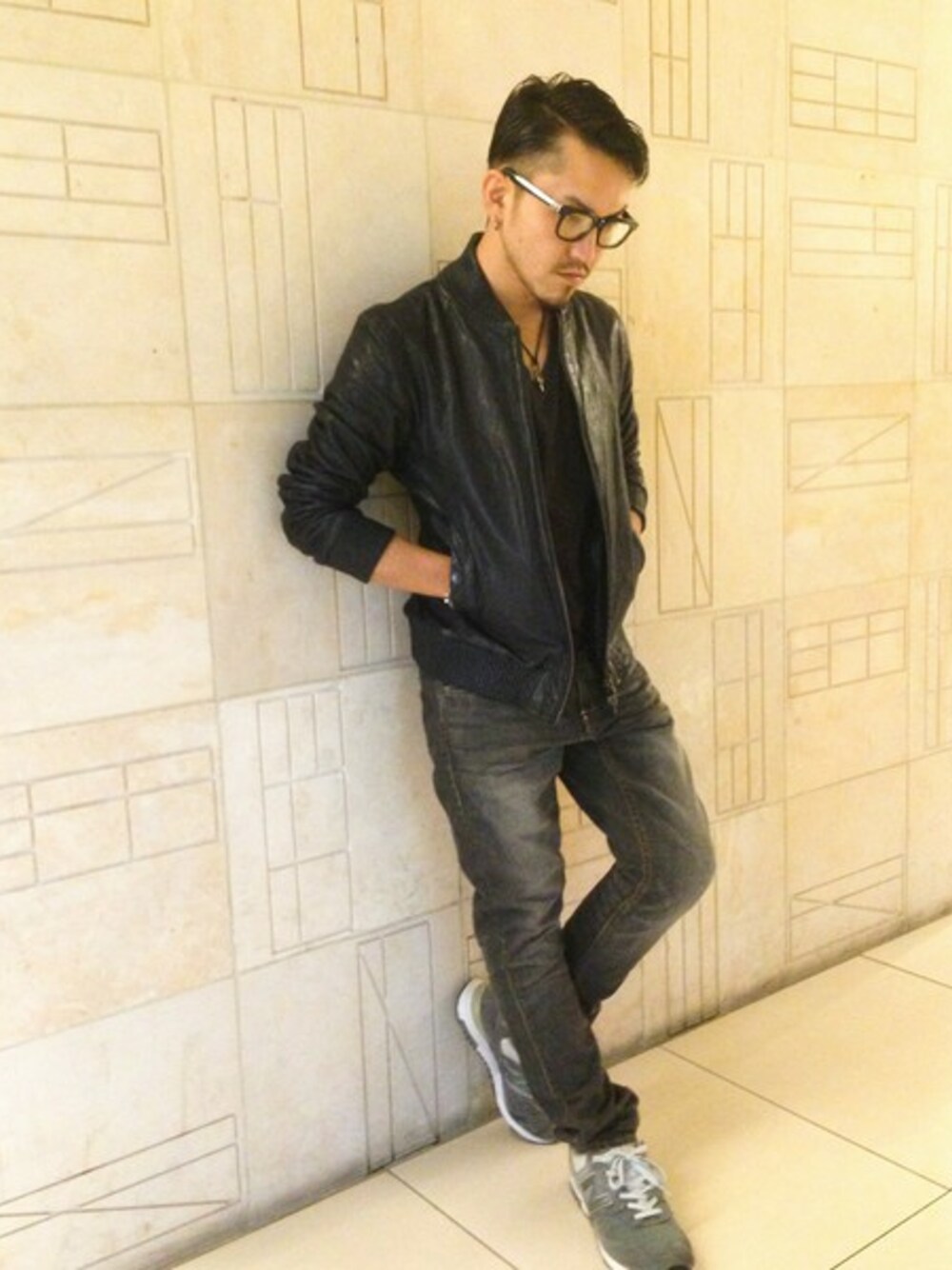Y.ushiyamaのミリタリージャケット「avirex/アヴィレックス/メンズ/MA-1 LEATHER RIB BOULSON/MA-1 レザー リブブルゾン」を使ったコーディネート