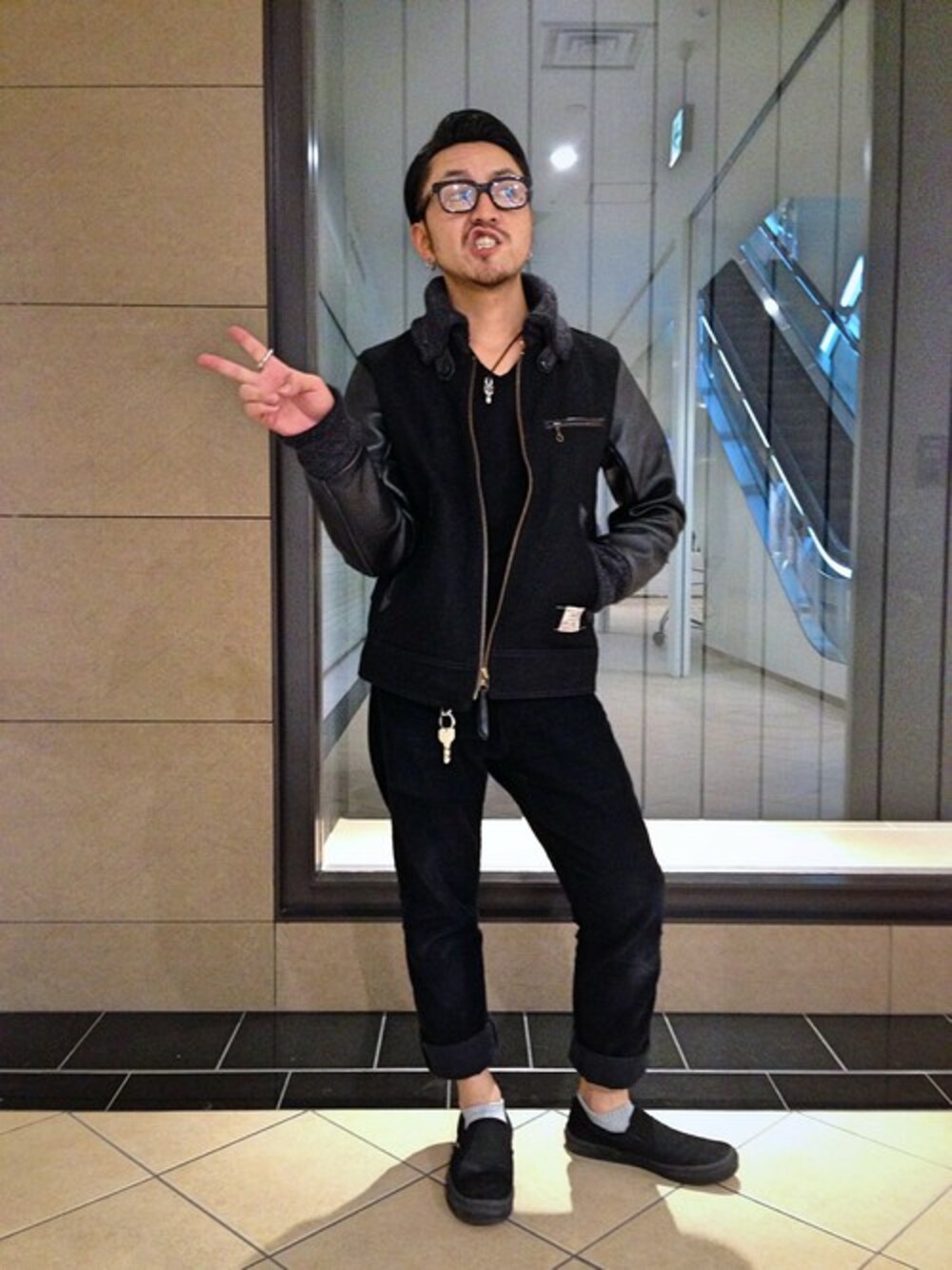 Y.ushiyamaのスタジャン「AVIREX(アヴィレックス) メンズ ドンキーカラー ショートジャケット」を使ったコーディネート