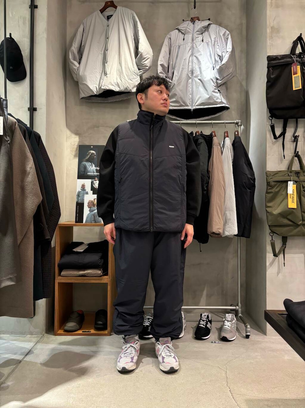 FARAHのナイロンベスト入荷しました。 サラッと羽織やすく、ゆったりとしたサイズ感で同素材のナイロンジョガーパンツと合わせて着用しました。 冬のレイヤードスタイルで活躍するナイロンベストです。 お問い合わせの際はぜひアミュプラザ博多店までお電話お待ちしております。 アミュプラザ博多店 〒812-0012 福岡県福岡市博多区博多駅中央街1-1 アミュプラザ博多 4F TEL:050-2017-9010 営業時間:10:00~20:00 定休日:不定休