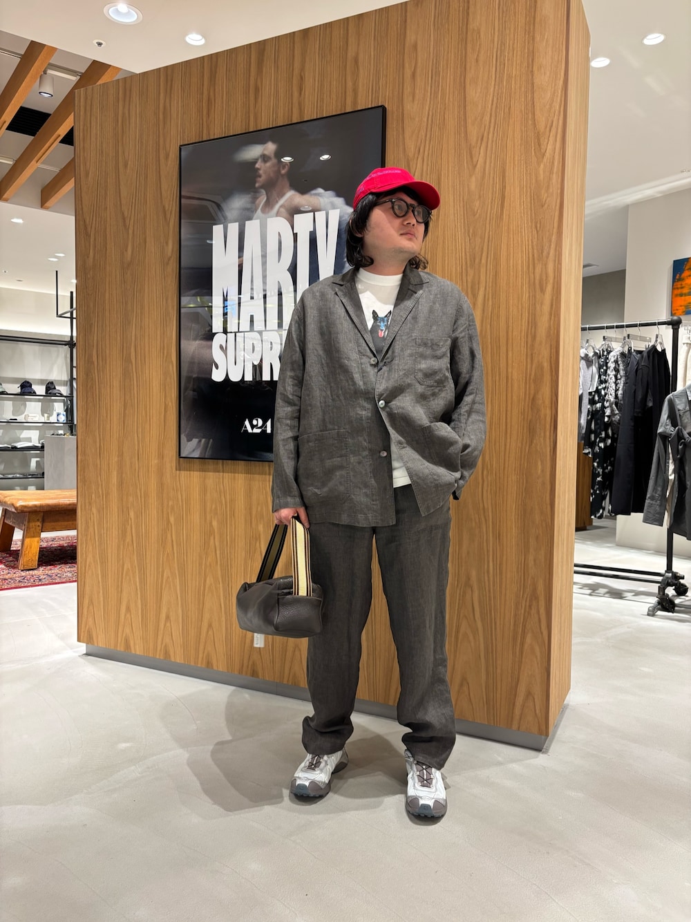 ご覧いただきありがとうございます。 今回はYLEVEのセットアップを着用しました。 細番手のリネンを使用し、糸段階で特殊なムラ染めを施した素材です。今季はシャンブレーで表現し、洗い晒したような風合いと独特の落ち感、軽さを実現しています。SUMIは墨染めで、経年変化を楽しめる染色です。また、手洗いも可能です。 ジャケットはゆったりとしたシルエットの3ボタンカバーオールタイプでパンツはイージー使用です。 春の羽織ものに最適ですし、私服でジャケットを着ることに苦手意識のある方や、夏でも長袖を着たい方にもオススメです。 是非お近くお越しの際は店舗でご試着してください。