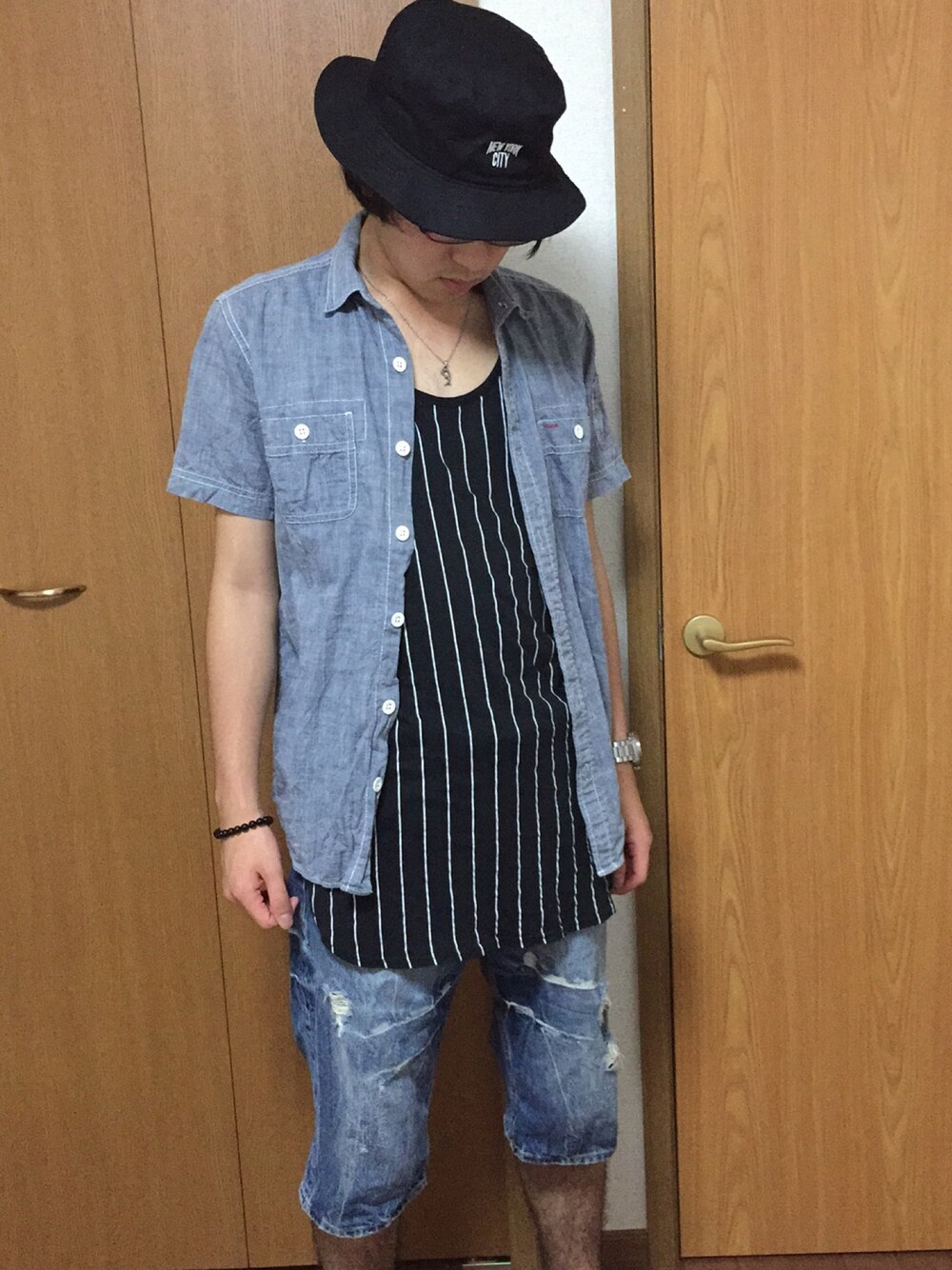 ブラック系のトップスを着用したメンズの春コーディネートの1枚目の写真