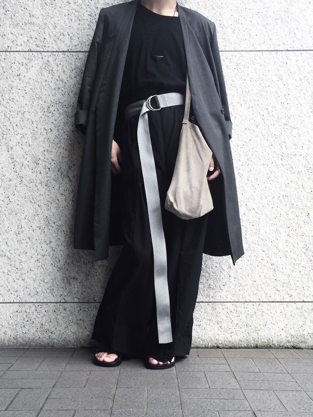 モードな雰囲気を意識して フェミニンな要素もプラス ベルトでアクセントを